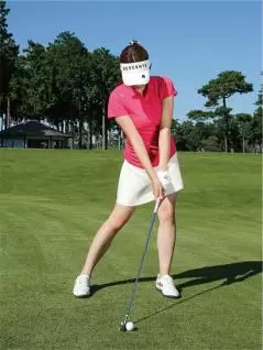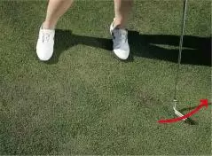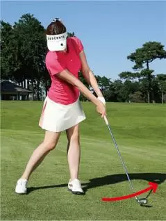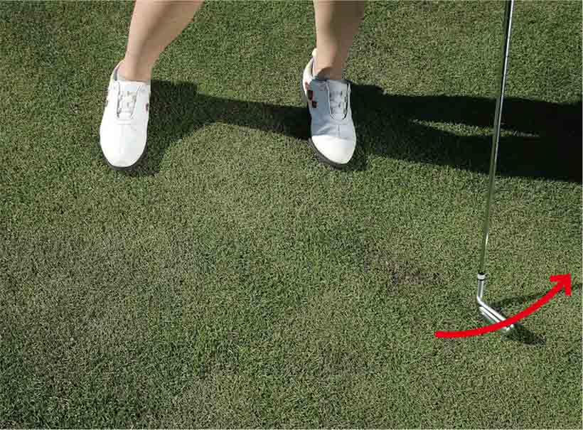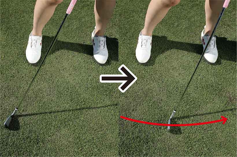 クラブヘッドを芝の上で引きずってみよう。クラブヘッドが軽い円軌道を描き、フェースターンが自然に行われる