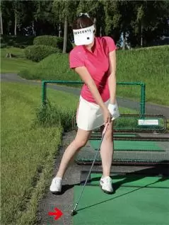 インパクトの理想形を理解するには練習場のマットの端の段差を利用するといいですよ。マットの端にフェース面を当ててアドレスの姿勢を作り、フェース面を真っすぐ押しましょう。アドレスでは体重が左右均等でも、フェース面を強く押そうと思えば腰を左に回して体重を左足に乗せるはず。両手の位置はアドレスよりも少し目標側となり、自然とハンドファーストの形が作られます。これがボールにパワーを効率よく伝えられる体勢です。体重が右足に乗ったままではフェース面を強く押せませんよね。でも実際のスイングではこうしたハンドレートのインパクトになっているゴルファーの方がとても多いんです。