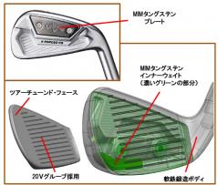 FLASHフェースカップを、S25C(軟鉄)鍛造のボディに搭載。また、中空構造となっているヘッド内部には、FLASHフェースカップで生まれる驚異的なボール初速を少しも犠牲にすることなく、無駄な振動を吸収してくれるウレタン・マイクロスフィアを搭載した。これらにより、プレーヤーは大きな飛びと心地良いフィーリングを同時に手にすることができる。