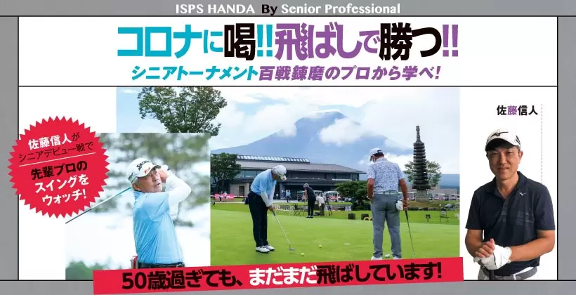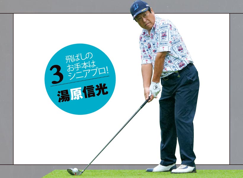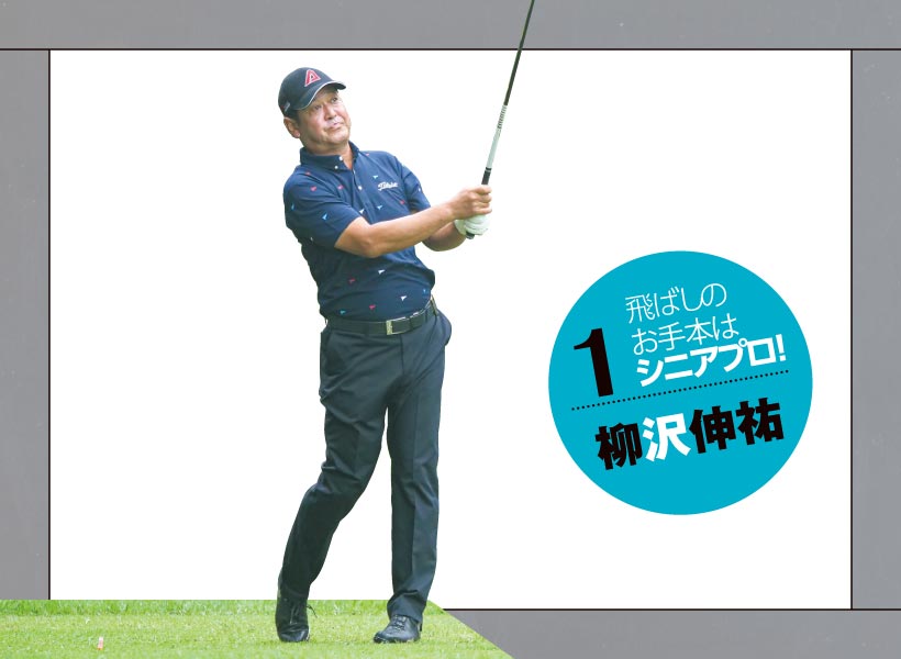 柳沢選手はシニアの中でもかなりの飛ばし屋です。距離が出てスイングが若々しく見えるのは他の選手と比べてトップが深いからです。ぼく自身も含めほとんどの人はキャリアを重ねるほどトップが浅くなります。それは単に体が固くなるだけではなく、曲げたくない気持ちが強くなるからです。