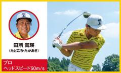 田所 嵩瑛ダウンスイングで手元側がしなって、しなり戻りのスピードも速すぎない。球が上がり過ぎず、つかまり過ぎないから、思い切り叩けます。インパクトゾーンで球を押しながらヘッドが抜けて行くので打ち出し方向のコントロール性も抜群です。