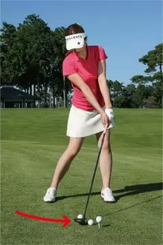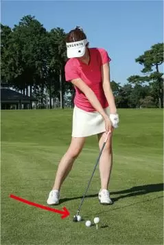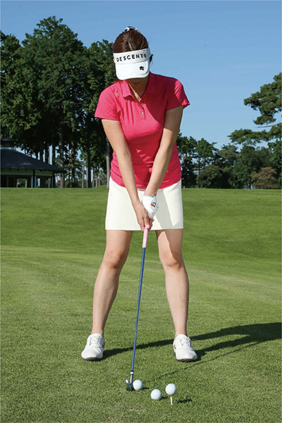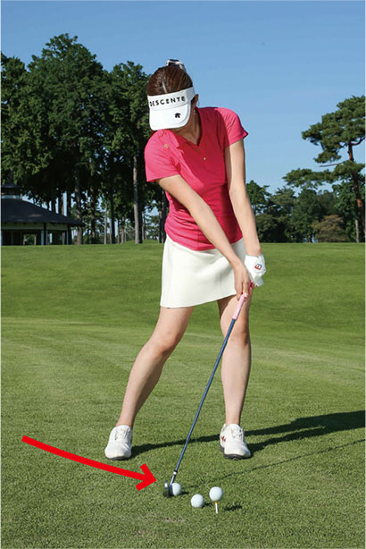 ボールを左カカト内側の延長線上にセットすれば、自然とアッパーブローにとらえられる。スイング自体は7番アイアンのショットとほぼ一緒。