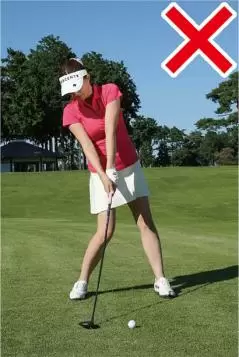5番などのフェアウェイウッドのショットでは、7番アイアンよりもボールを少し左に置くだけで、7番アイアンの延長のつもりでスイングしましょう。ボールを上から打ち込みすぎるとフェースがかぶりやすく、ボールが上がりにくくなります。それを嫌がってボールを上げようとしてはスイング軌道の最下点がボールの手前となり、ダフリやトップが生じやすい。どちらかといえばすくい打ちになる人が多いので、フェアウェイウッドでもボールの先のターフを薄く取るくらいの気持ちでスイングするのがいいと思います。