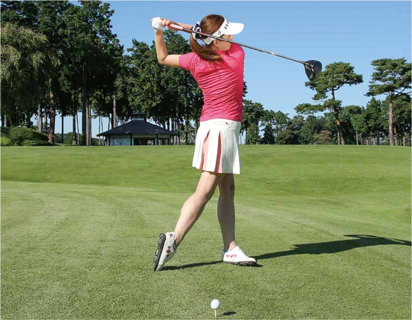素振りの練習で大事なのは、ときにはリラックスして振るのもいいけれど、本番のショットに直結したスイングを身につけること。インパクトで減速したり、力まかせに振り回してカラダのバランスを崩したりしてはいけません。基本的には力感を8割くらいにセーブし、クラブヘッドできれいな円弧を描けるように、フィニッシュまで気持ちよく振り切りましょう。