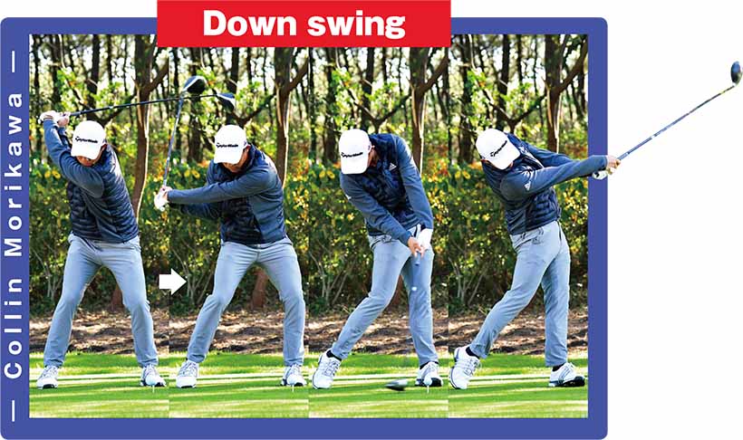 大多数のゴルファーは、ボールを体の回転でとらえようとしますが、その結果、振り遅れと不必要なローテーションを発生させます。一方、モリカワ選手のスイングで彼が能動的にしていることは、正しいベクトルの第一加速をシャフトに与えているだけに近いのです。