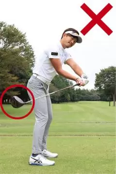 右に飛んでしまう原因は、テークバックでフェースを開きすぎるから