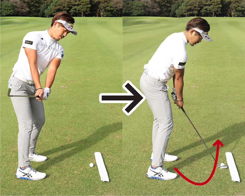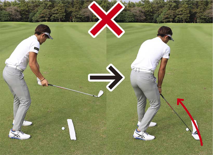 クラブの番手どおりの距離を打つには、インサイドインに振ってクラブの入射角を安定させることが先決。