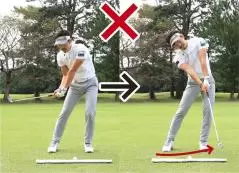 ●第2回:バックスイングでは左ヒザをなるべく動かさないように「我慢」しよう