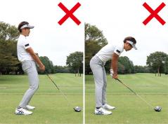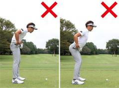 そのためにも「上体はリラックス、下半身はどっしり」の感覚で構えましょう。何となく立っているだけという感じで下半身に安定感がないと、スイング中に足腰が必要以上に動いてクラブヘッドの軌道がブレてしまいます。また前傾姿勢が深すぎたり、背中を伸ばそうとして胸を反らせすぎたりしてもNGです。
