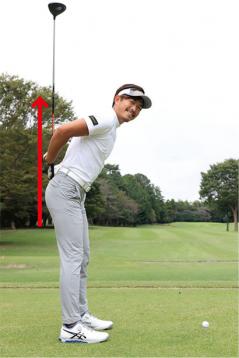 お腹に力を溜めて構えれば、アドレスの姿勢のバランスがよくなる