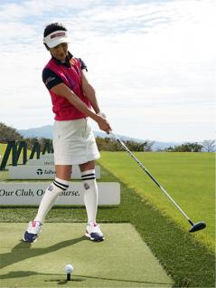 高くティアップし、左ワキの締まりを意識してスイングしよう。