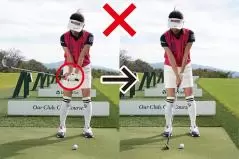 チャックリの原因はテークバック時に手先の動きでクラブを上げたり、ハンドファーストに打ちすぎたりといろいろですが、手打ちになっているところが一番の問題点です。グリーン周りからのアプローチって、ピンまで20〜30ヤードくらいと結構近いですよね。スイングの振り幅が小さくてもカラダも回転主体でスイングしないといけないのに、カラダを回すことを忘れると手先でクラブを操作してしまいやすいんです。ボールに当てにいってインパクトで右ワキがあき、手首が折れてしまう傾向のある人はチャックリがよく出るはずです。