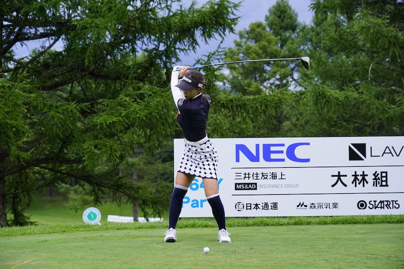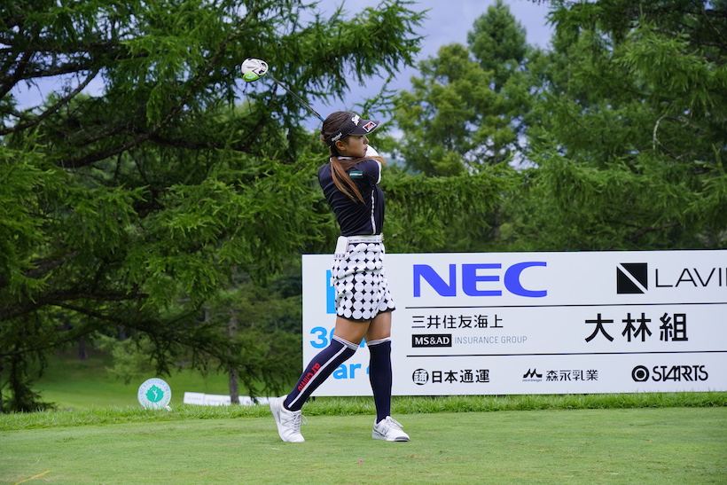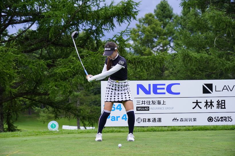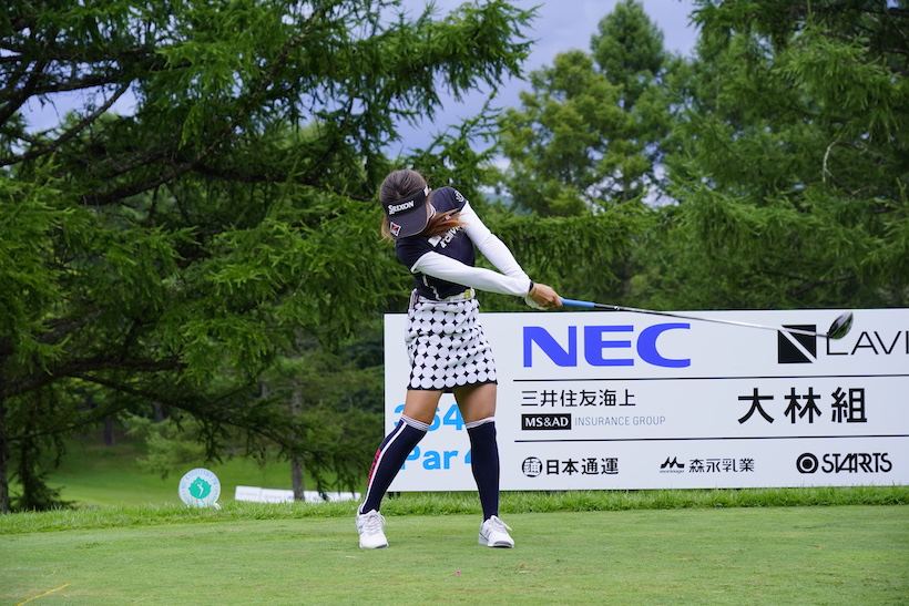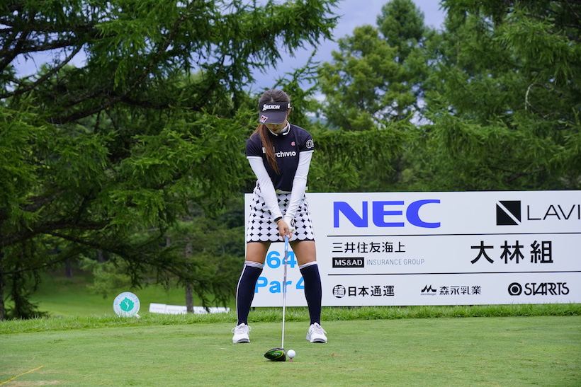 ●バランスの良いアドレスと大きなスイングアークで飛距離と方向性を両立する柏原明日架のドライバースイングを写真で解説