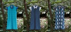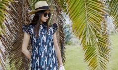 左:プリントストレッチUVドレス"GEO"/28,000円+税