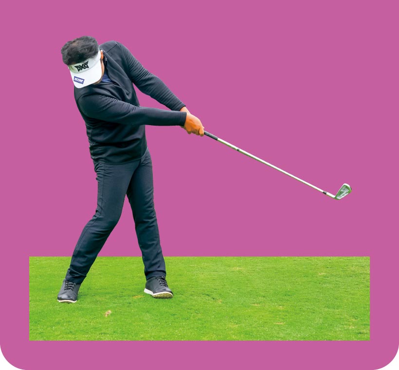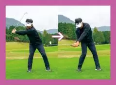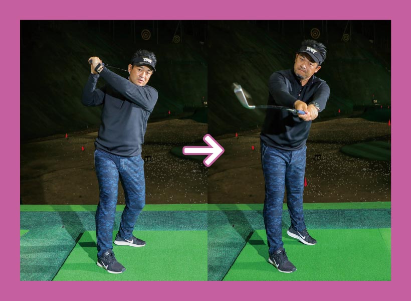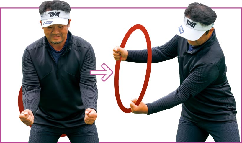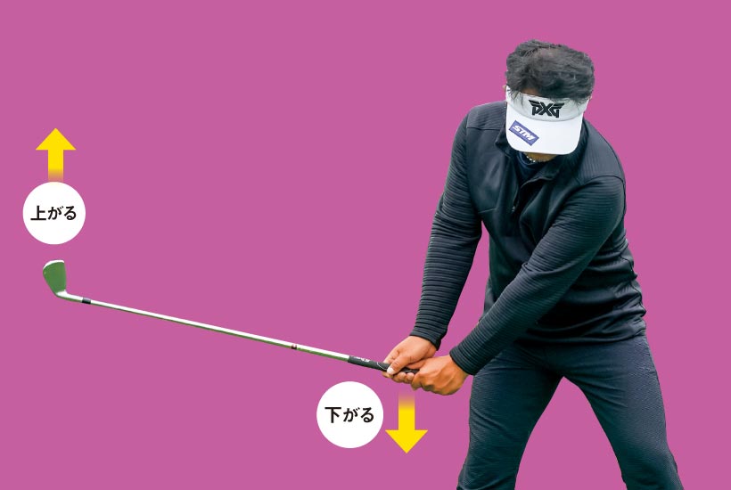 クラブを逆さに持って素早く「ビュン!」と振ったら、誰もが手元を先行させるのです。