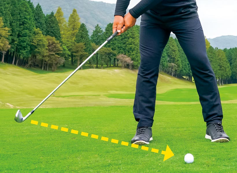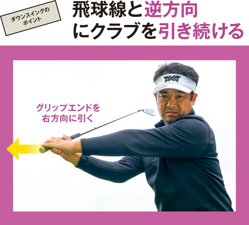 ダウンスイングのポイント|飛球線と逆方向にクラブを引き続ける
