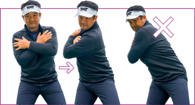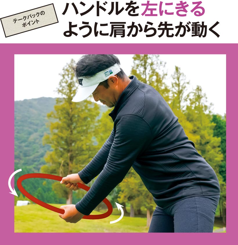 テークバックのポイント|ハンドルを左にきるように肩から先が動く