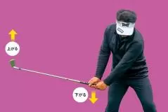 プロの場合はクラブが右に投げ出されるように動くため、ヘッドが遠回りして下りる。その分ヘッドスピードも上がります。アマチュアは自分のほうにクラブを引っ張り込んでタメを作ろうとしますが、手を低くキープできないのでヘッドが落ちてしまう。結果、ダフりや、すくい打ちになります。クラブを下ろす際は釣りのキャスティングのように右サイドにクラブを投げ出しましょう。手元の先行をキープしつつ低い位置に保てるので勝手にタメができます。