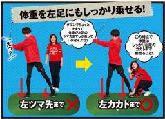 写真 右) この時点で体重はしっかり左足のカカトまで乗せること!