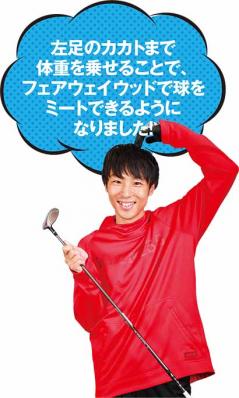 「左足のカカトまで体重を乗せることで、フェアウェイウッドで球をミートできるようになりました!」(石井さん)