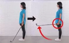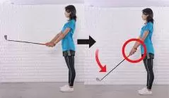 ・肩とヒジは動かさず、手首の力だけでクラブを持ち上げること。