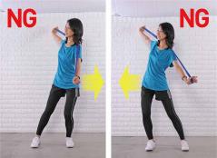 ・上体をひねった時のヒザの向きに注意。常に正面を向くのが正解