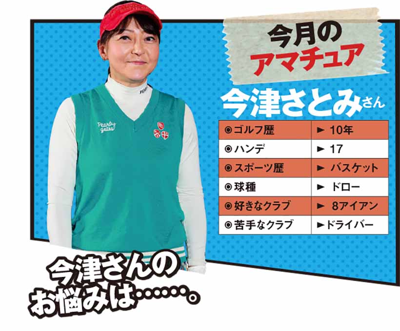 今津さんのお悩み「ドライバーの飛距離が伸びずに悩んでいます。球が途中で失速して、うまく力が伝わっていない気がします」