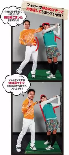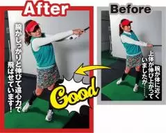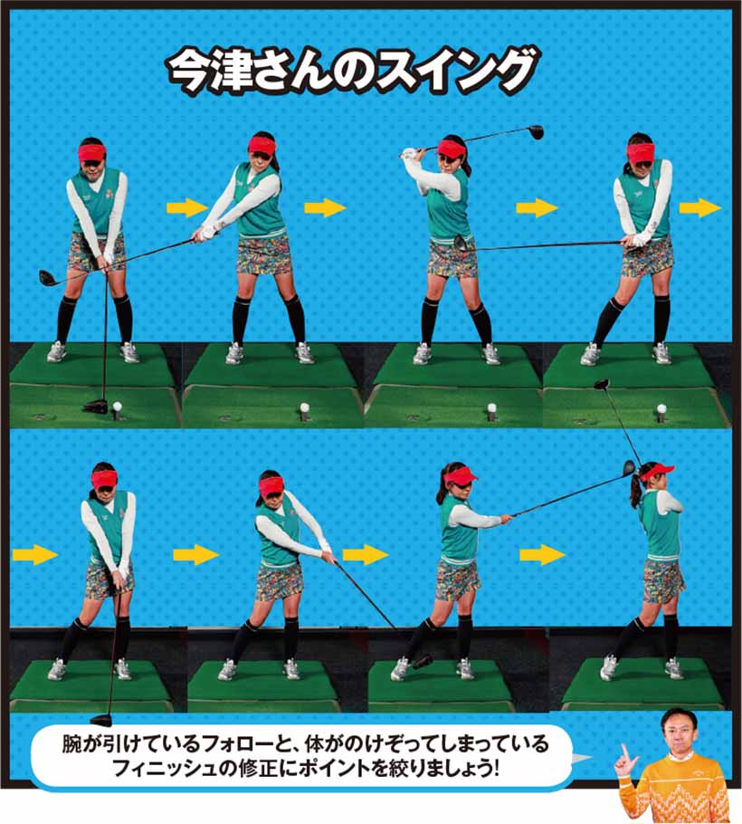 「腕が引けているフォローと、体がのけぞってしまっているフィニッシュの修正にポイントを絞りましょう!」(鳥井悠治プロ)