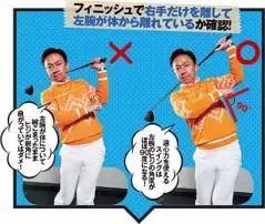 フィニッシュで右手だけを離して左腕が体から離れているか確認!