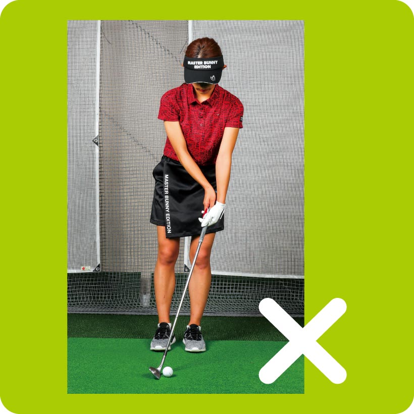 さらに、ダフリやトップも防ぎたいので、アドレスは、胸をほんの少しだけターゲットに向けて、若干オープンスタンス。すると、インパクトで左肩の高さが変わらず、思うような弾道が出やすくなる。