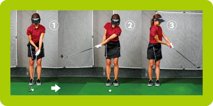 基本のボール位置より、少し左にボールを置き、ボールをふわりと投げるようなイメージでスイングする。フェースを返さないよう注意。