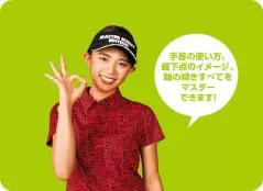 初ラウンドのときに最も難しいと感じたのがパッティングとアプローチでした。そもそも打ち方がまったくイメージできなくて、距離感がどうというレベルにも至らず……。でも、右手でボールを投げるイメージというのは、わかりやすいですよね!練習に取り入れて、アプローチ上手を目指します!