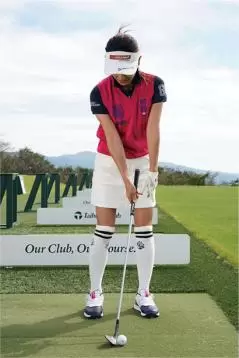 ボールの近くに立って構え、軽いアウトサイド・インの軌道でスイング