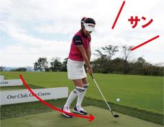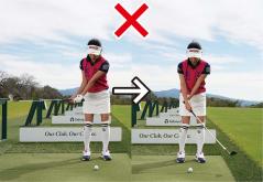 アドレスの姿勢を作ったら、「イチ」でスイングの始動の体勢になり、「ニー」でバックスイングして、「サン」でインパクトするという具合に「イチ、ニー、サン」のリズムを感じながらスイングするのもいい方法です。自分なりのリズム感でヒッカケを徹底治療しましょう。