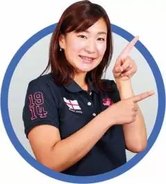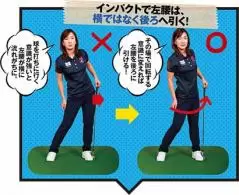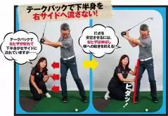 「テークバックで右へ、フォロースルーで左へ、流れている下半身に的を絞って修正しましょう」(志賀友香プロ)