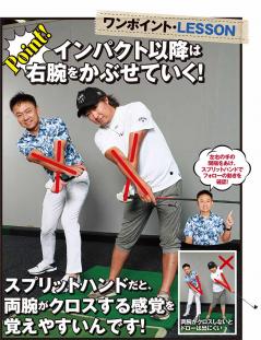 インパクト以降は 右腕をかぶせていく!スプリットハンドだと、両腕がクロスする感覚を覚えやすいんです!