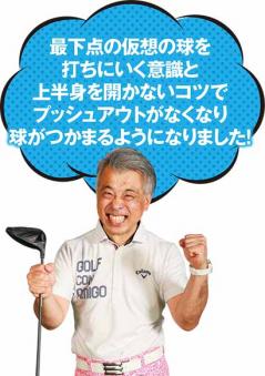 「最下点の仮想の球を打ちにいく意識と上半身を開かないコツでプッシュアウトがなくなり球がつかまるようになりました! 」(松原さん)