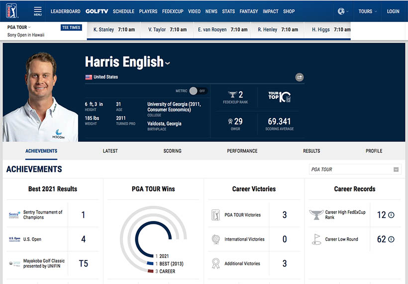 米ツアーの2021年初戦、セントリー・トーナメント・オブ・チャンピオンズはプレーオフの末、ハリス・イングリッシュがホアキン・ニーマンを破って8年ぶりの優勝を飾った。本選ではニーマンはイングリッシュの4組前をプレーしていた。この長い間隔がプレーオフの勝敗に影響を及ぼすというデータがある。