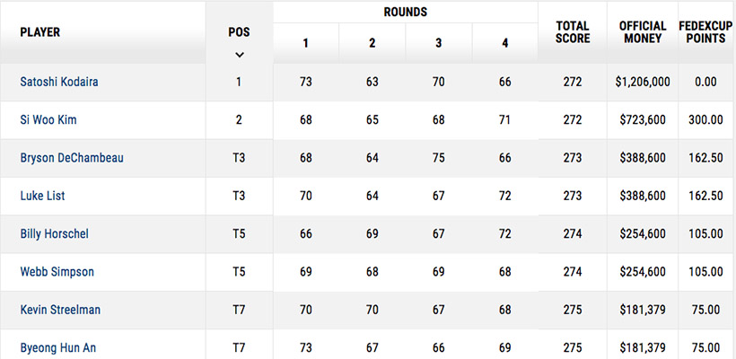 最後に、ここ10シーズンで“待ち過ぎ”を克服して勝った2選手のうちの1人が日本選手であることを記しておきたい。2018年RBCヘリテージの小平智だ。この時、小平は最終組の5組前で回り、プレーオフの相手は最終組のキム・シウだった。