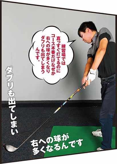 藤原さんのお悩み「練習場では真っすぐ打てるのにコース本番だけなぜか右への球が多くなりダフリも出てしまうんです」