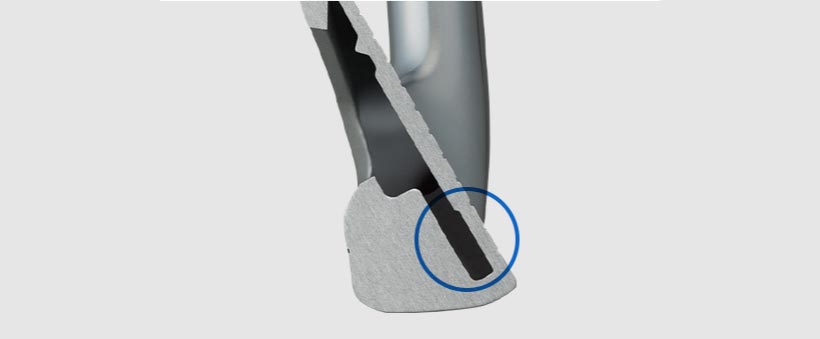 反発性能の高いフェース素材、構造でありながらもソール下部にバイブレーションスタビライザーを装填することで、ソフトな打感を実現している。