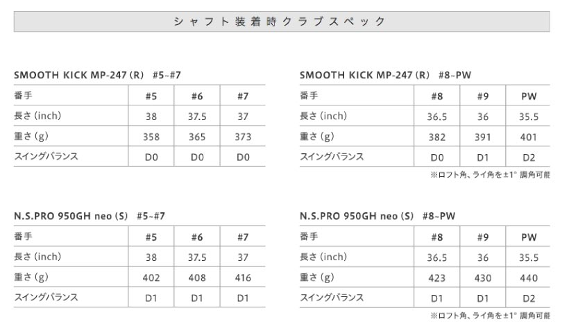 I#5~PW=高強度AM355Pカップフェース+軟鉄鋳造ボディ+バイブレーションスタビライザー樹脂