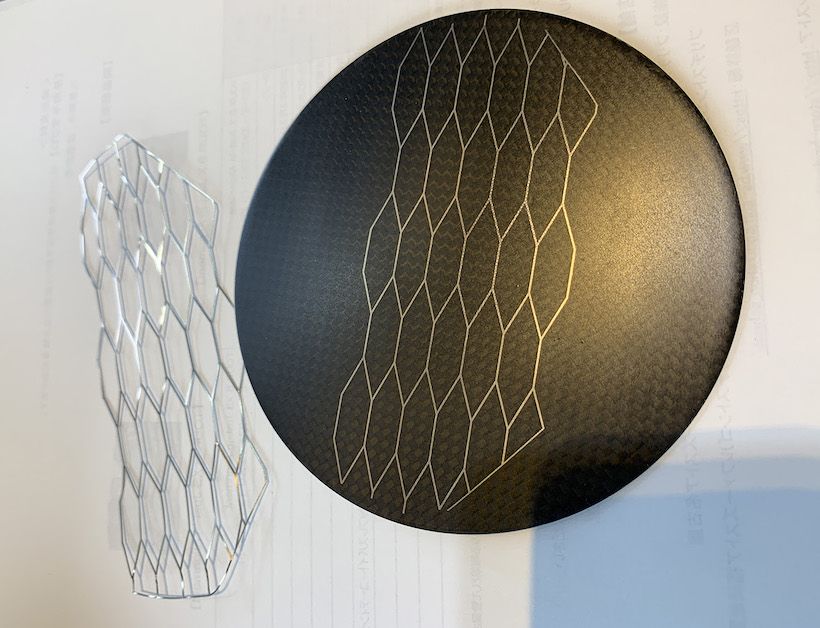 これがハニカムストリング。たわませてみるとフェースからヘッド後方部に向けてはたわみが大きいですが、トウ・ヒール方向はしっかりとしていてたわみが少ないです。