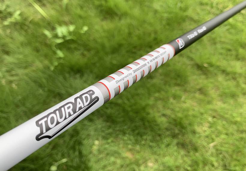 まず構えてみると、あまり大き過ぎず、きれいな形状のヘッドなので構えやすいです。シャフトは純正のTOUR AD TX3-5のフレックスS。Sで57gの中調子シャフトで、振ってみるとクセがなくて重量的にも僕はちょうどいい感じでした。