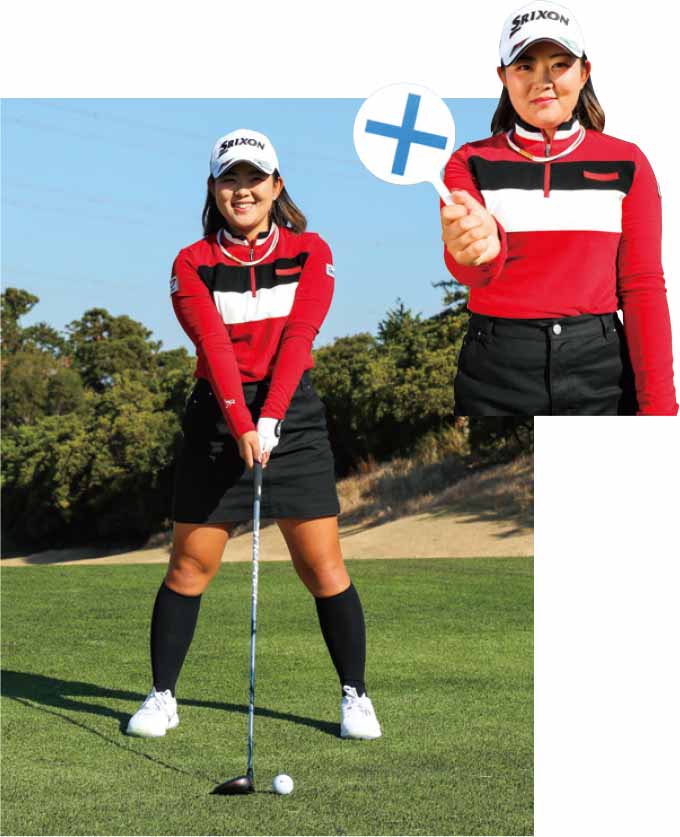 ●Check Point 1:アドレスでは両ヒザを軽くまげて、重心を下に。