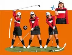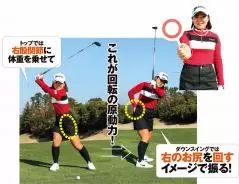 重要なのは体とクラブが一体になって回転すること。肩や腕を回すよりも、腰を回転させる意識を持つことで、その一体感が得られる。