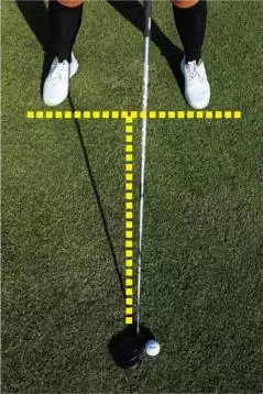 高い球を打ちたいからといって極端に球を左足寄りにすると、体の回転の前に右肩が下がってしまう。球の位置は真ん中少し左で、ヘッドは体の中心にくるように構える。