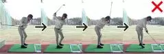 一見簡単そうに見えると思いますが、実は意外と難しいのがこのドリル。油断するとすぐにヘッドがインサイドに入ってきて手元と重なってしまったり、さらには手元よりヘッドが内側に入ってしまうこともあるでしょう。