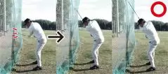 とっても簡単ですが、これまでどおりバックスイングすると壁から遠く離れてしまうはず。インサイドに引き込んでいたスイングとはまるで違う動きなので、最初は戸惑うかもしれませんが、この動きこそが、ダウンスイングでクラブをインサイドから下ろすための準備としては不可欠。