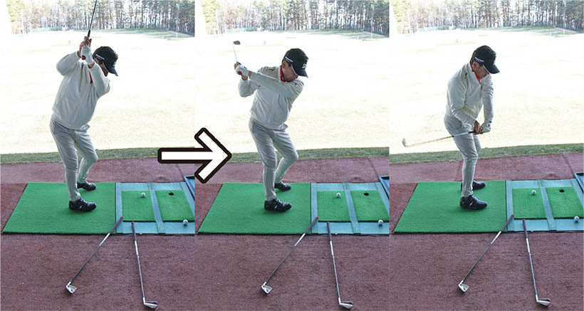 ●改造ドリルVol.7:クラブを「上げて下ろす」は外側から内側に動く「時計回りスイング」が鉄則! を確認しょう。